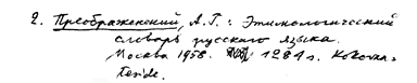 2. Juslenius, D.: Finsk Orda-Boks Försök. Stockholm 1745. 567 s. Puoliransk. [V. Thomsenin kappale! Muistiinpanoja.]